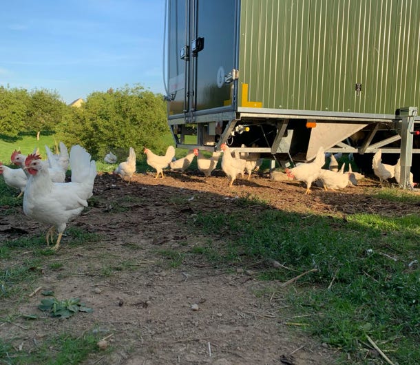 Im August 2020 haben unsere neuen „Mitbewohner“ – und zwar 300 Legehennen – ihr neues Zuhause, einen Hühner-Mobilstall, bezogen. Dieser vollautomatische Hühnerstall befindet sich auf dem „Rittergut Rothschönberg“ und kann gerne besichtigt werden.