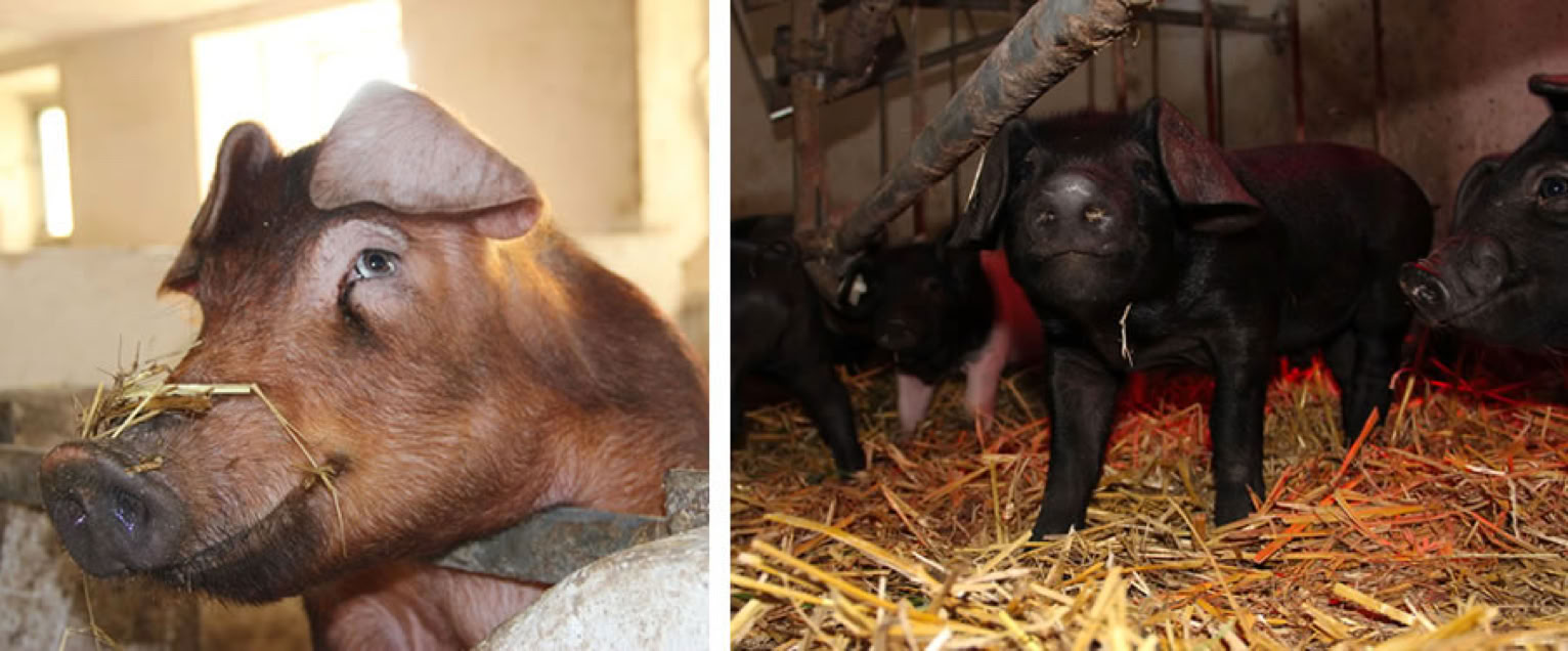 Bei uns leben derzeit fünf verschiedene Hausschweinrassen - Angler-Sattelschwein, Duroc-Schwein, Edelschwein, Deutsches Landschwein und unser Zuchteber "Rudi", Rasse Pietrain. Wir züchten, ziehen glückliche Schweine auf und verarbeiten nach Schlachtung das Schwein selbst.