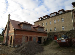 Hier befindet sich ein Ambulant Betreutes Wohnen (ABW) mit angegliedertem Nutztierbereich. Den Rinderstall haben wir mit unseren Bewohnern selbst fertiggestellt.