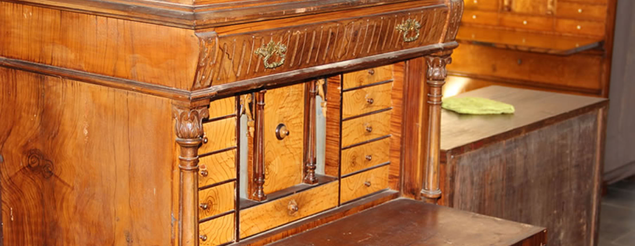 Im Rahmen der sinnstiftenden Beschäftigung arbeiten wir mit unseren Bewohnern zusammen in mühevoller Kleinarbeit und mit viel Liebe fürs Detail antiquarische Möbel auf. Anschließend können einige Exemplare in der Eisdiele unseres Gasthofes besichtigt werden und stehen zum Verkauf.
