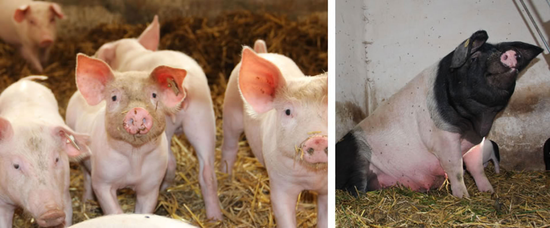 Bei uns leben derzeit fünf verschiedene Hausschweinrassen - Angler-Sattelschwein, Duroc-Schwein, Edelschwein, Deutsches Landschwein und unser Zuchteber "Rudi", Rasse Pietrain. Wir züchten, ziehen glückliche Schweine auf und verarbeiten nach Schlachtung das Schwein selbst.